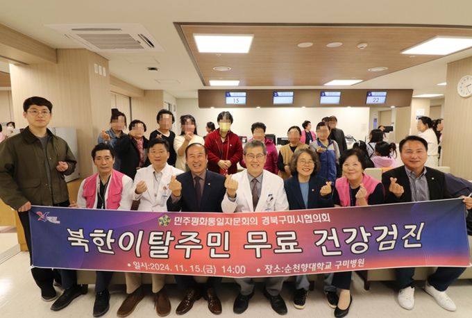 김구호 민주평통 구미시협의회장은 “일부 북한이탈주민들이 비용 부담 때문에 건강검진을 받지 못하는 실정을 듣고 이번 지원을 추진하게 됐다”며, “앞으로도 이들이 안정적으로 정착하며 건강한 삶을 살 수 있도록 꾸준히 노력할 것”이라며 협조해 준 순천향병원에 감사를 전했다.