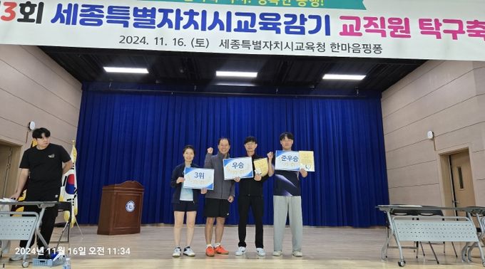 [경남도민뉴스=도문호 기자] 지난 11월 16일 토요일에 연양초등학교에서 개최된 제3회 세종특별자치시교육감기 교직원 탁구 축제가 성공적으로 마무리됐다.