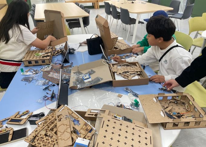 다양한 센서를 조작해 보며 아이들은 호기심 어린 눈빛으로 변수를 바꿔가며 집중력 있게 수업에 임했다.
