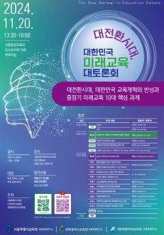 [경남도민뉴스=도문호 기자] 세종특별자치시교육청은 오는 11월 20일에 서울중앙우체국 포스트타워 10층 대회의실에서 서울특별시교육청, 인천광역시교육청과 공동으로 ‘2024 대전환시대, 대한민국 미래교육 대토론회’를 개최한다.