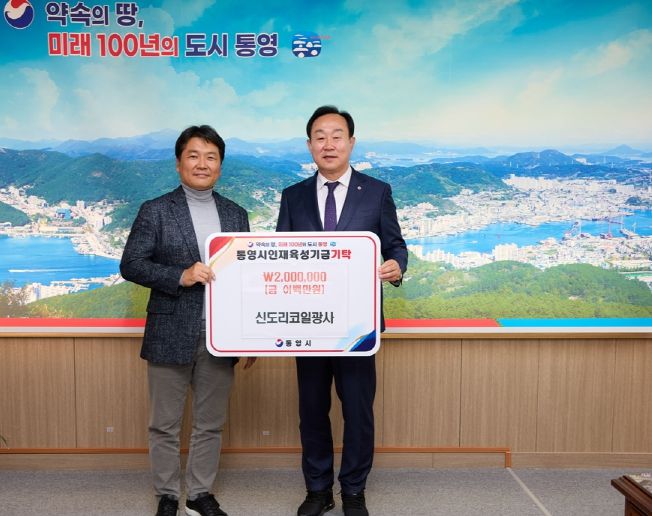 [경남도민뉴스=김부경 기자] 신도리코일광사(대표 김현득)는 지난 18일 통영시를 찾아 인재육성기금 200만 원을 기탁했다.