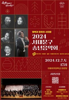 [경남도민뉴스=김완호 기자] 서대문구가 한 해를 뜻깊게 마무리하고 따뜻한 감동을 전하는 ‘2024년 행복과 환희의 서대문구 송년 음악회’를 개최한다.