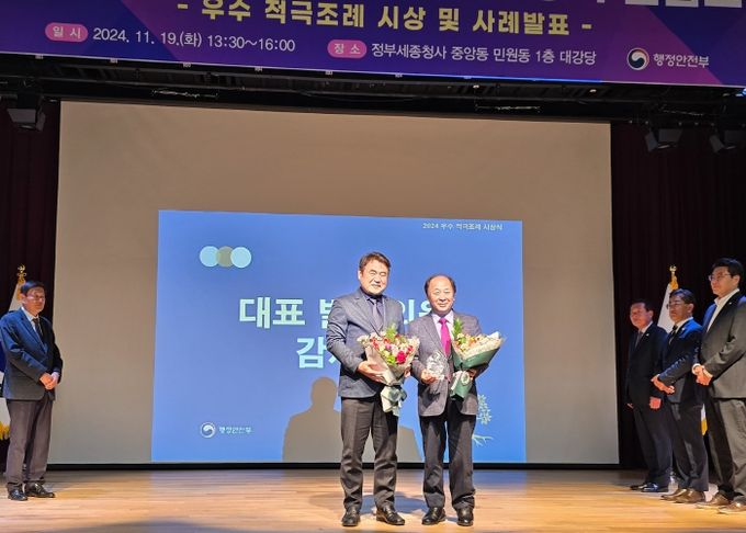 [경남도민뉴스=이돈휘 기자] 박선하 경상북도의회 의원(국민의힘, 비례)이 대표 발의한 '장애인 드론 교육훈련 지원 조례'가 11월 19일 정부세종청사에서 열린 행정안전부 주최 ‘2024년 우수 적극조례’ 시상식에서 우수상을 수상했다.
