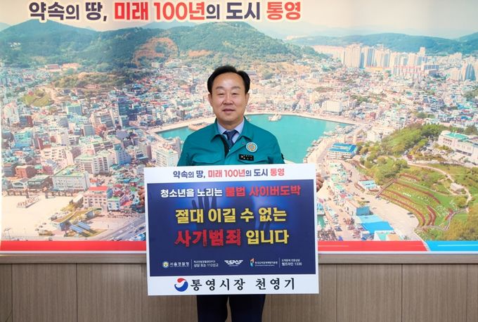 [경남도민뉴스=김부경 기자] 천영기 통영시장은 지난 21일 목요일 사회문제로 대두되고 있는 청소년 대상 불법 도박 문제의 심각성을 인지하고, 근절에 동참하고자'청소년 도박 근절 릴레이 챌린지'에 참여했다.