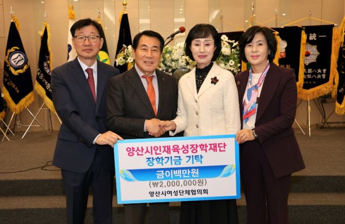 [경남도민뉴스=최미정 기자] 양산시는 22일 양산시여성단체협의회(회장 우정숙)가 양산M컨벤션에서 개최한 '여성단체협의회 역량강화 워크숍' 자리에서 지역 인재육성을 위한 장학금 200만원을 양산시인재육성장학재단에 기탁했다고 밝혔다.