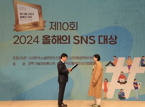 ‘올해의 SNS’는 한국소셜콘텐츠진흥협회와 의회정책아카데미가 주최‧주관하고, 과학기술정보통신부가 후원하는 대회다. 전국 공공기관‧기업의 블로그, 인스타그램, 유튜브 등 SNS 활용 역량을 사용자 투표, 전문가 심사 등 종합적 평가를 거쳐 최종 선정한다.