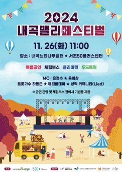 [경남도민뉴스=김완호 기자] 서울 서초구는 오는 26일 깊어가는 가을 정취를 만끽할 수 있는 ‘내곡밸리페스티벌’을 개최한다고 밝혔다.
