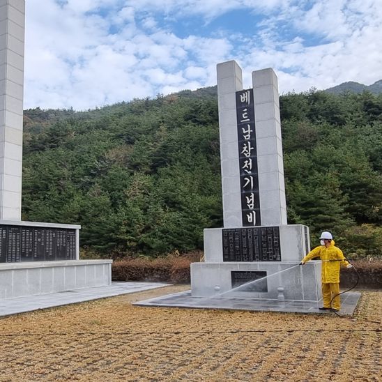 건립 후 17년이 경과된 현충시설 환경개선을 위해 4개의 기념비 바닥과 벽면, 이용자 계단에 쌓인 이끼, 곰팡이 등을 고압세척으로 말끔히 세척하고 주변 환경정비로 새롭게 단장했다.