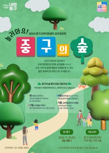 [경남도민뉴스=김완호 기자] 서울 중구가 11월 30일 오후 1시부터 4시까지 중구교육지원센터에서 ‘놀러와요, 중구의 숲’을 개최한다고 밝혔다.