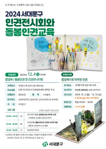 [경남도민뉴스=김완호 기자] 서대문구가 ‘2024 서대문구 인권전시회와 돌봄인권교육’을 개최한다고 26일 밝혔다.