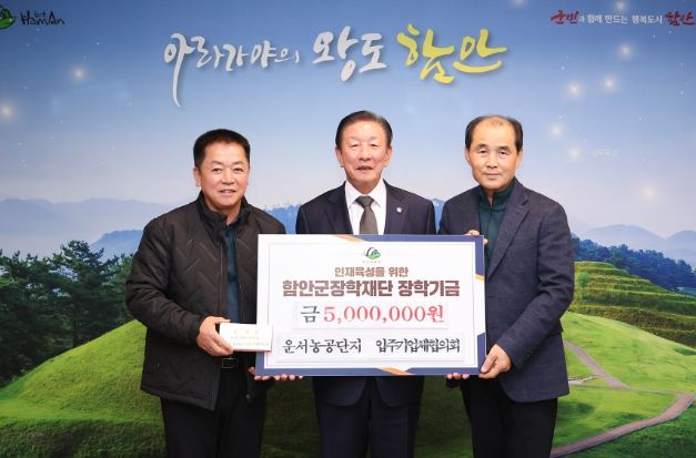 [경남도민뉴스=이상민 기자] 함안군장학재단은 27일 오전 칠원운서농공단지 입주기업체협의회(회장 김동국)에서 장학기금 500만 원을 기탁했다고 밝혔다.