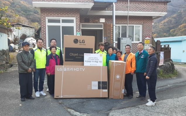 이번에는 칠원읍 산정경로당이 선정돼 자사에서 생산한 텔레비전·냉장고·공기청정기를 기부하고 제품 설치까지 진행했다.