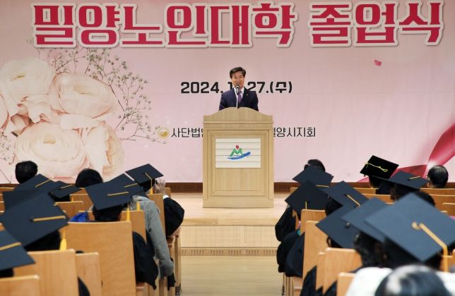 안병구 밀양시장, 박상웅 국회의원(밀양·의령·함안·창녕), 허홍 밀양시의회 의장, 시의원 등 주요 내빈이 참석한 이날 행사는 △400여 명에 대한 졸업장 수여 △노인강령 낭독 △모범 노인 상장 수여 △내빈 축사 순으로 진행됐다.