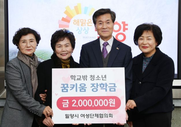 한편 밀양시여성단체협의회는 매년 학교 밖 청소년에게 장학금을 지원하고 있으며, 다양한 사회공헌 활동과 봉사활동을 통해 지역 사회에 따뜻한 나눔 문화를 확산에 앞장서고 있다.