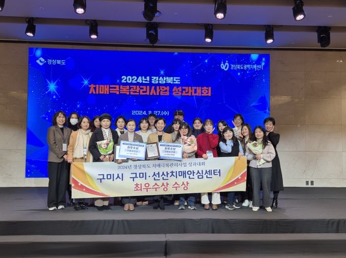 [경남도민뉴스=이돈휘 기자] 구미시는 지난 27일 안동 스탠포드 호텔에서 열린 '2024년 경상북도 치매극복관리사업 성과대회'에서 구미치매안심센터와 선산치매안심센터가 나란히 ‘최우수상’을 수상하는 쾌거를 이뤘다.