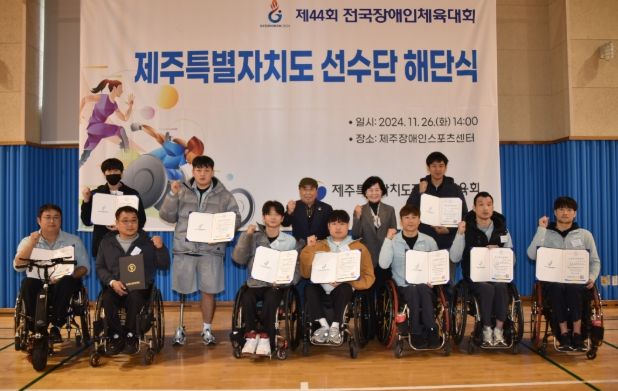 [경남도민뉴스=하형수 기자] 제주특별자치도 선수단 해단식이 지난 26일 제주장애인스포츠센터 2층 체육관에서 본부임원, 입상종목 감독 및 지도자, 선수, 가맹경기단체장 유관기관 등 150여 명이 참석한 가운데 개최 됐다.