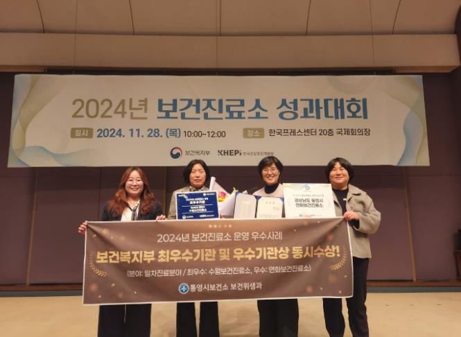 [경남도민뉴스=김부경 기자] 통영시는 지난 28일 보건복지부에서 주관하고 서울 프레스센터에서 열린 ‘전국 보건진료소 운영 성과대회’에서 최우수 기관상과 우수 기관상을 수상하며, 일차진료부분 우수성을 인정받았다.