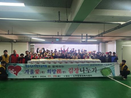 소주동 행정복지센터의 지원으로 센터 지하주차장에서 희망웅상 등 70여명의 분주한 손길로 만들어진 김장김치 170박스(배추 530포기)는 아동·청소년 결연가정과 저소득 어르신 가정 및 다문화 가정 등에 전달됐다.
