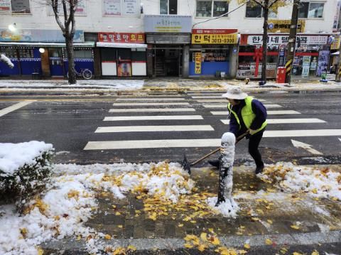 가을철 낙엽은 보도와 도로에 쌓여 미끄럼 사고와 통행 불편을 초래할 뿐만 아니라, 빗물받이를 막아 침수 피해를 유발할 수 있다. 여기에 폭설로 인한 도로와 보행로의 미끄러움이 더해지면서, 안전사고 예방을 위한 낙엽 및 제설 작업이 시급히 요구됐다.