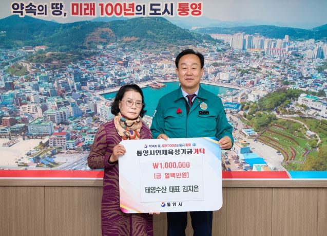 지난 11월 29일 태영수산(대표 김지은)은 통영시를 찾아 인재육성기금 100만 원을, 통영시 수영경영진흥협회(회장 이상부)에서도 통영시의 인재육성사업에 힘을 보태고자 200만 원의 기금을 기탁했다.