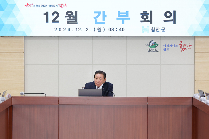 [경남도민뉴스=이상민 기자] 함안군은 2일 오전 군청 별관 3층 중회의실에서 조근제 함안군수 주재로 12월 간부회의를 개최했다.