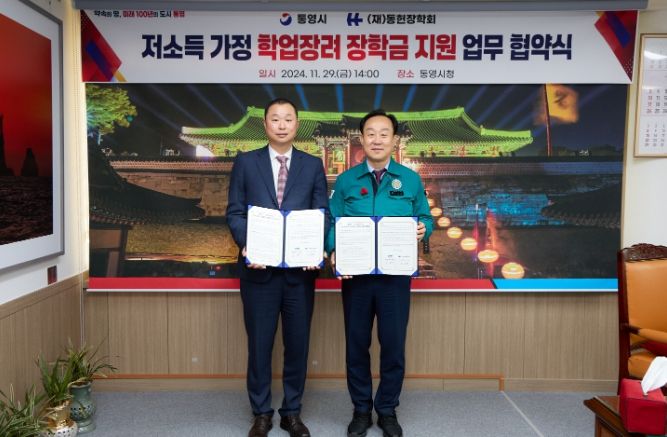 [경남도민뉴스=김부경 기자] 통영시와 재단법인 동헌장학회(이사장 강진용)은 지난 11월 29일 통영시청에서 지역 내 저소득 및 북한이탈주민가정 학생들의 학업장려를 위한 장학금 지원 업무협약을 체결했다.