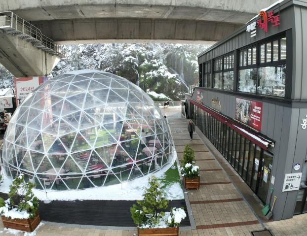 한편 구는 최근 카페폭포 앞에 추위를 막아 주는 대형 돔(사진)을 설치해 겨울철 명소로 많은 인기를 모을 전망이다.