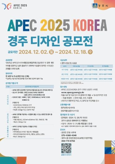 이번 공모전은 20년 만에 다시 우리나라에서 열리는 2025년 APEC 정상회의의 의미와 개최 도시인 경주를 상징하는 다양한 디자인 공모를 통해 전 국민적 공감대를 형성하기 위해 마련됐다.