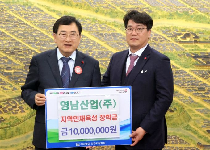 [경남도민뉴스=이돈휘 기자] 영남산업(주)은 2일 경주 지역 인재 양성과 교육 발전을 위해 장학금 1천만원을 (재)경주시장학회에 기탁했다고 밝혔다.