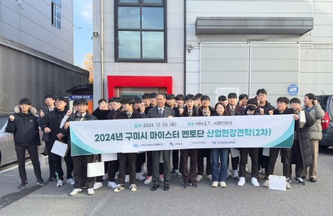 [경남도민뉴스=이돈휘 기자] 구미시 마이스터멘토단은 지난 3일 금오공업고등학교 학생들과 함께 (주)엠이티 본사와 ㈜영인테크 본사를 방문해 산업현장 견학을 진행했다. 이번 견학에는 마이스터멘토단과 멘토-멘티 협약을 체결한 금오공업고등학교 학생 및 교사 26명과 경북경영자총협회와 구미시청 관계자들이 참여했다.