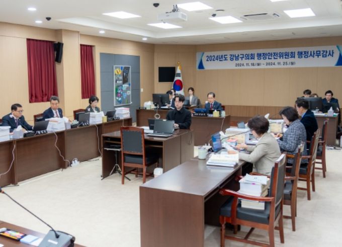 [경남도민뉴스=김완호 기자] 서울시 강남구의회 행정안전위원회는 제323회 제2차 정례회를 맞아 11월 18일부터 25일까지 총 8일간 중대재해예방실, 정책홍보실, 감사담당관, 행정국(동 주민센터 포함), 안전교통국 소관 부서에 대한 행정사무감사를 실시했다.