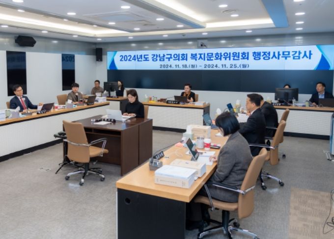 [경남도민뉴스=김완호 기자] 서울시 강남구의회 복지문화위원회는 제323회 제2차 정례회를 맞아 11월 18일부터 25일까지 총 8일간 복지생활국, 미래문화국, 강남복지재단, 강남문화재단 소관 부서에 대한 행정사무감사를 실시했다.