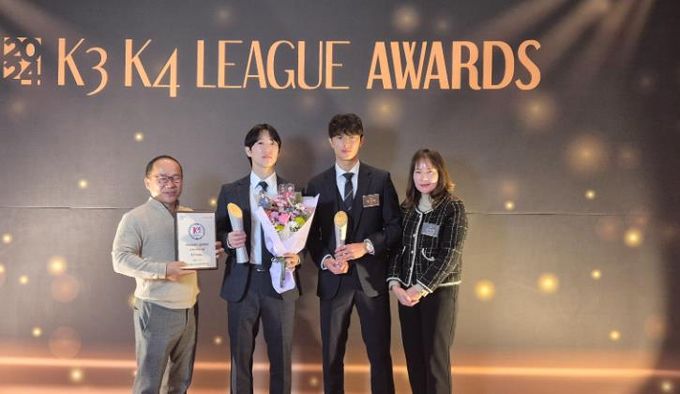 [경남도민뉴스=박민호 기자] 창원FC가 4일 대한축구협회가 주관한 ‘2024 K3리그 어워즈’에서 구단은 ‘뉴미디어 인기상’을 문슬범과 전성진은 각각 ‘도움상’과 ‘영플레이어상’을 수상했다.