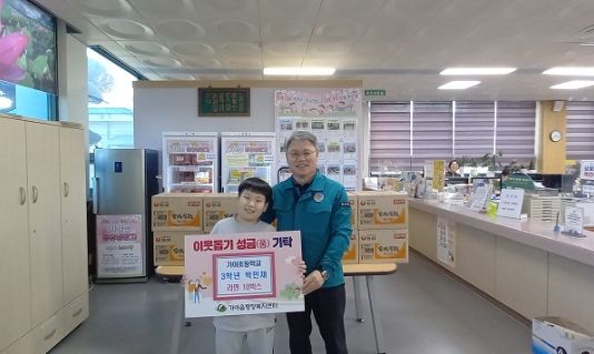 이순응 가야읍장은 “열심히 모은 용돈을 아까워하지 않고 이웃을 위해 기부한 민채군의 마음이 기특하다며 이러한 경험이 훌륭한 어른으로 성장하는 밑거름이 되길바란다.”고 격려했다.