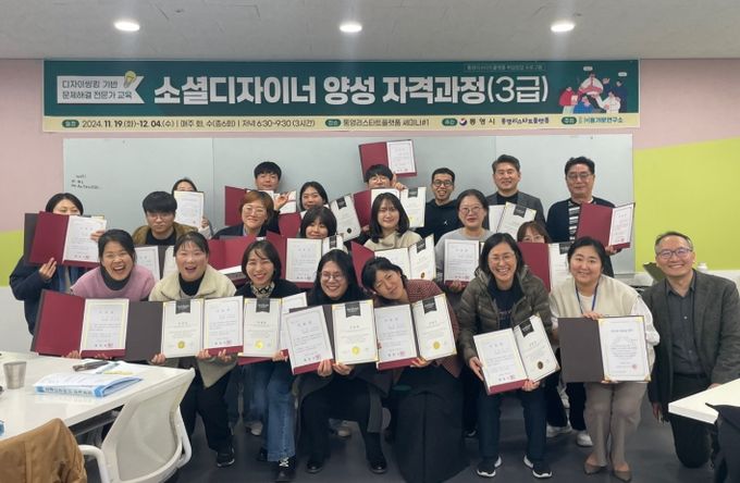 [경남도민뉴스=김부경 기자] 통영시는 지난 4일 통영리스타트플랫폼 전문가 양성 취·창업 교육 프로그램으로 진행된 ‘소셜디자이너 양성 자격과정’이 성황리에 마무리 됐다.