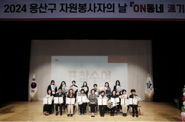 이날 자원봉사자의 날 기념식은 용산아트홀(녹사평대로 150) 소극장 가람에서 ‘ON동네 溫기 가득’이란 이름으로 열렸다. 자원봉사자의 사기를 높이고 자원봉사 활동을 장려·홍보하기 위한 자리다.
