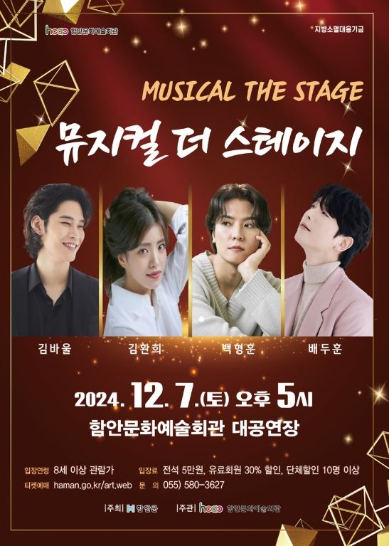 [경남도민뉴스=이상민 기자] 함안문화예술회관은 오는 7일 오후 5시 뮤지컬 더 스테이지 콘서트를 개최한다. 이번 공연은 함안군 지방소멸대응기금으로 열린다.