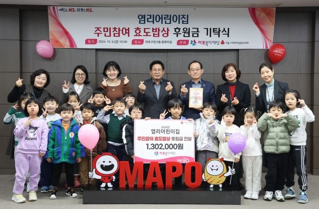 이번 기탁식에는 박강수 마포구청장을 비롯해 후원자인 염리어린이집 장경자 원장과 원아 17명 등이 참석해 따뜻한 나눔을 함께했다.