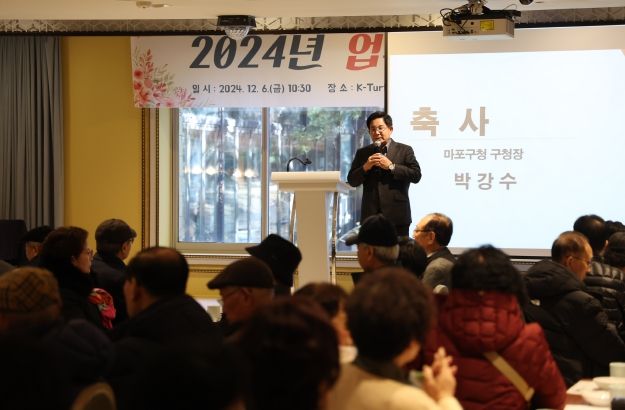 [경남도민뉴스=김완호 기자] 박강수 마포구청장은 12월 6일 오전, 케이터틀(마포구 백범로 23) 아비스홀에서 열린 ‘2024년 대한노인회 마포구지회 업무평가 보고회’에 참석했다.
