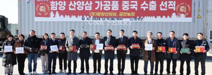 [경남도민뉴스=장광동 기자] 함양군은 12월 9일 ㈜함양산양삼의 산양삼 가공제품 중국 수출을 기념하는 선적식과 함께 산림청 정부 지원 공모사업인 임산물 글로벌 수출특화시설 준공식을 개최했다고 밝혔다.