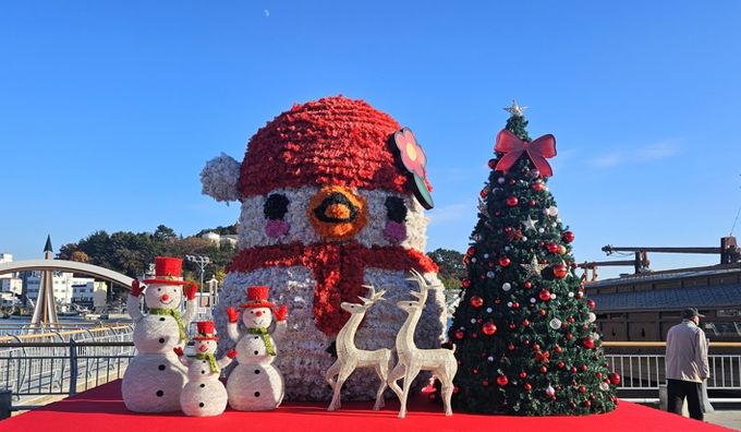 [경남도민뉴스=김부경 기자] 통영시는 지난 8일 강구안 문화마당에 대형 눈사람 동백이와 크리스마스 트리 조형물을 설치했다.