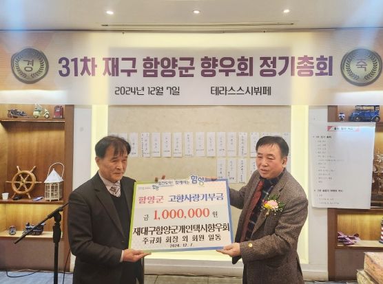 특히 고향사랑기부금 전달식에서는 재대구 함양군 개인택시향우회 주규화 회장을 포함한 회원들이 100만 원의 기부금을 전달하며 고향 사랑을 실천했다.