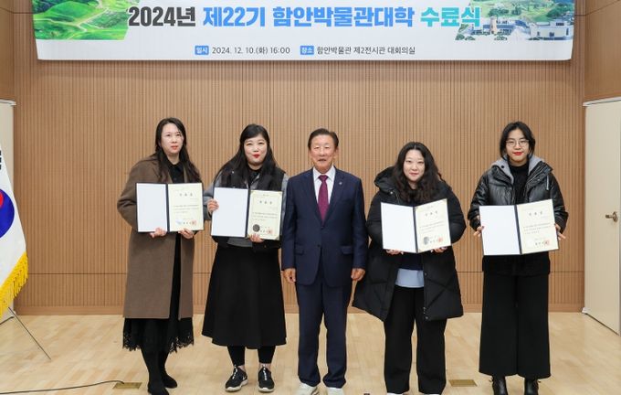 조근제 함안군수는 “교육과정을 잘 마치고 수료하는 모든 분 축하드린다. 앞으로도 함안박물관은 함안의 역사와 우수한 문화유산을 널리 알리고, 보다 많은 군민들이 애정과 관심을 가질 수 있도록 계속해서 고민하고 연구해서 알찬 구성으로 준비하겠다”고 말했다.