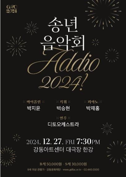 [경남도민뉴스=김완호 기자] 강동문화재단은 오는 12월 27일 강동아트센터 대극장 한강에서 연말을 아름답게 마무리할 수 있는 송년음악회 ‘Addio 2024!’를 개최한다고 12일 밝혔다.