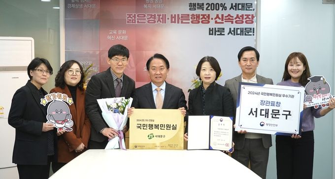 [경남도민뉴스=김완호 기자] 서대문구는 최근 행정안전부가 주관한 ‘2024년 국민행복민원실 인증 평가’에서 심사를 통과함은 물론 우수기관으로까지 선정돼 행안부 장관 표창을 받았다고 12일 밝혔다. 시상은 이달 6일 정부세종청사 중앙동 대강당에서 열린 ‘2024년 민원의 날’ 행사 때 이뤄졌다.