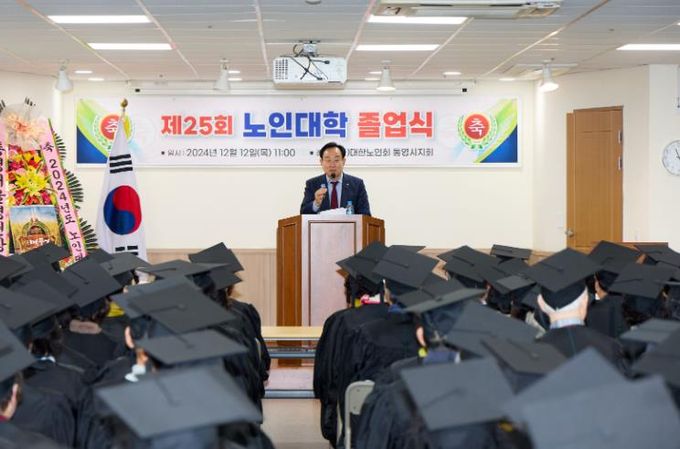 [경남도민뉴스=김부경 기자] (사)대한노인회 통영시지회 부설 통영시노인대학은 지난 12일 노인복지회관 4층 강당에서 제25회 졸업식을 개최했다.