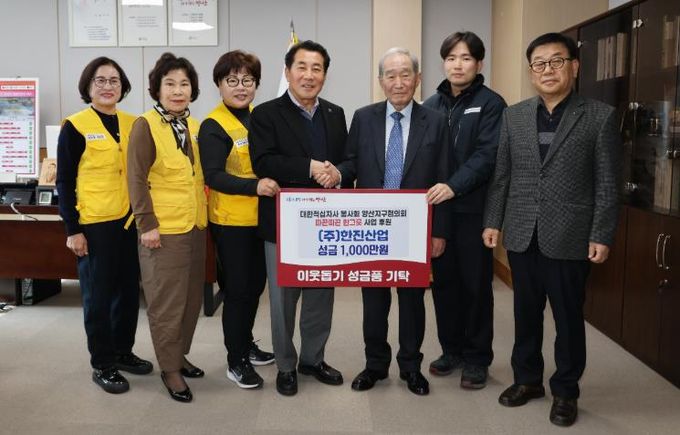 [경남도민뉴스=최미정 기자] 양산시 하북면에 위치한 풍력발전시스템 관련 기업 ㈜한진산업이 11일 양산시를 방문하여 대한적십자사 봉사회 양산지구협의회에 1,000만원을 기부했다.