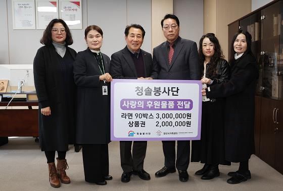 [경남도민뉴스=최미정 기자] 청솔봉사단는 16일 양산시를 방문해 라면 90박스와 상품권 200만원을 양산시가족센터에 기탁했다.