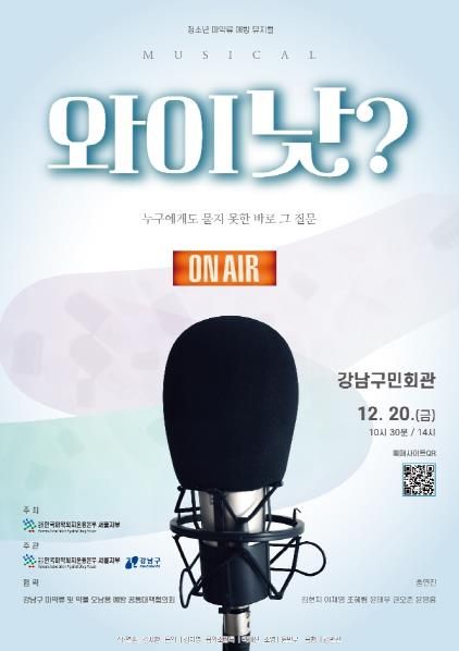 [경남도민뉴스=김완호 기자] 꿈이 모이는 도시, 미래를 그리는 강남구가 오는 12월 20일 강남구민회관에서 청소년 마약예방 뮤지컬 ‘와이낫’을 개최한다. 공연은 오전 10시 30분과 오후 2시 두 차례 진행되며, 관내 중·고등학생, 학부모, 교사 및 주민을 대상으로 전석 무료로 열린다.