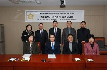 [경남도민뉴스=김완호 기자] 지난 17일, 김형원 연구단체 대표 의원을 필두로 백준석, 이인호, 김송환, 장정호, 이미재 의원으로 구성된 ‘용산구 관광사업 활성화를 위한 지방의회의 역할 연구회’ 연구단체는 용역 최종보고회를 개최했다.